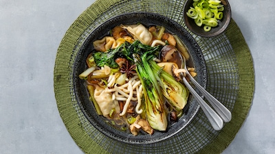 Wat Eten We Vandaag: Dumplingsoep met noedels en paksoi